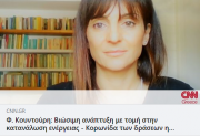 Διαβάστε την συνέντευξη της καθ. Φοίβης Κουντούρη στην δημοσιογράφο Χρυσούλα Γρίβα για το CNN Greece27-05-2021«Κορωνίδα όλων των δράσεων είναι η Εκπαίδευση. Θα πρέπει η βιωσιμότητα και ο σεβασμός του ανθρώπου προς τους διαθέσιμους περιβαλλοντικούς πόρους να περάσει στη συνείδηση των πολιτών από μικρή ηλικία και να αποτελεί μέρος της αγωγής των μαθητών σε όλη τη διάρκεια της σχολικής τους πορείας...
