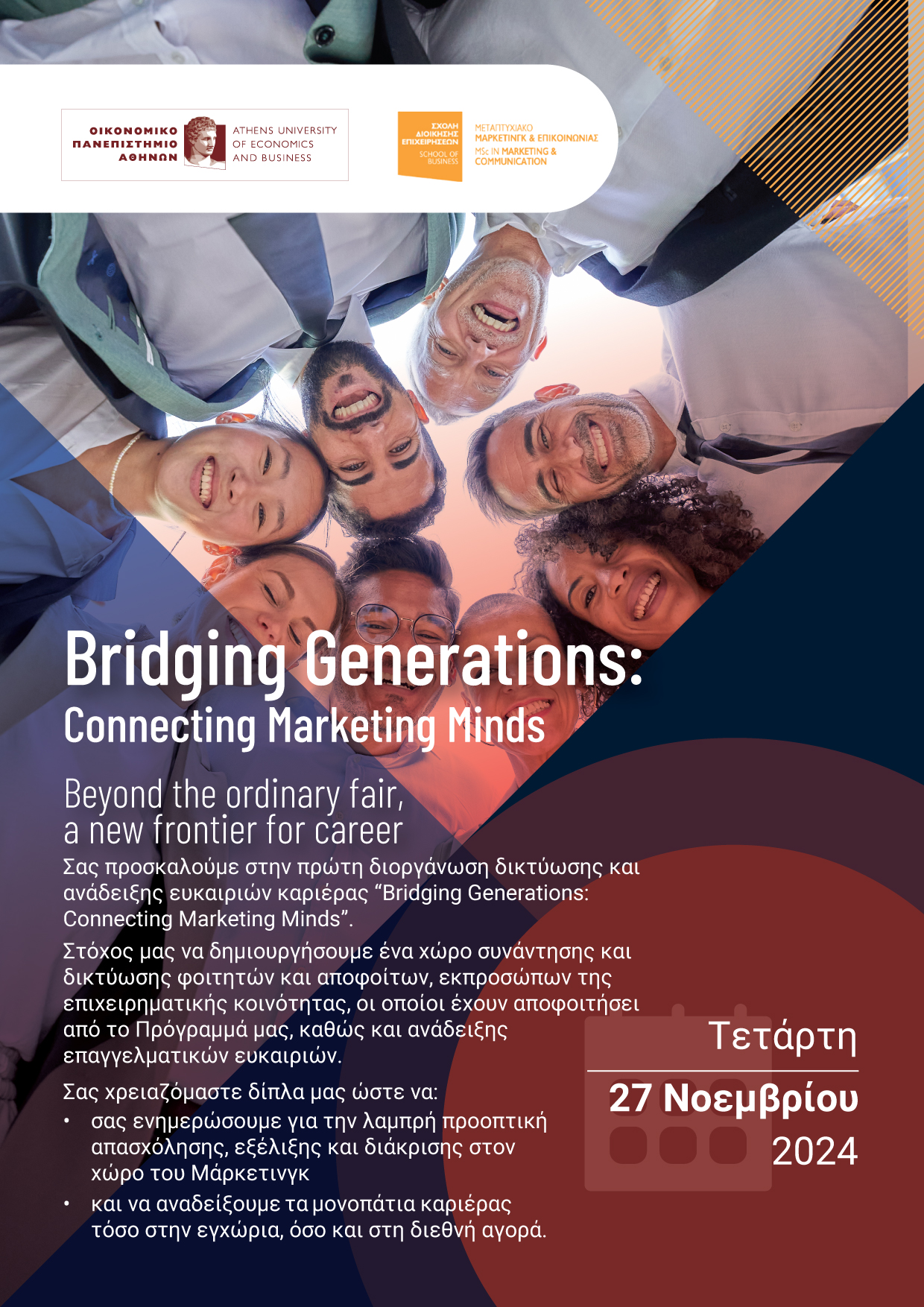 Το πρώτο Career Event διοργανώθηκε κατά το ακαδημαϊκό έτος 2024-2025 και συγκεκριμένα στις 27 Νοεμβρίου 2024, στο Radisson Blu Park Hotel. Η εκδήλωση είχε τίτλο "Bridging Generations: Connectiv Marketing Minds" και απευθυνόταν σε φοιτητές/τριες και αποφοίτους του προγράμματος χωρίς περιορισμό στο έτος αποφοίτησης.