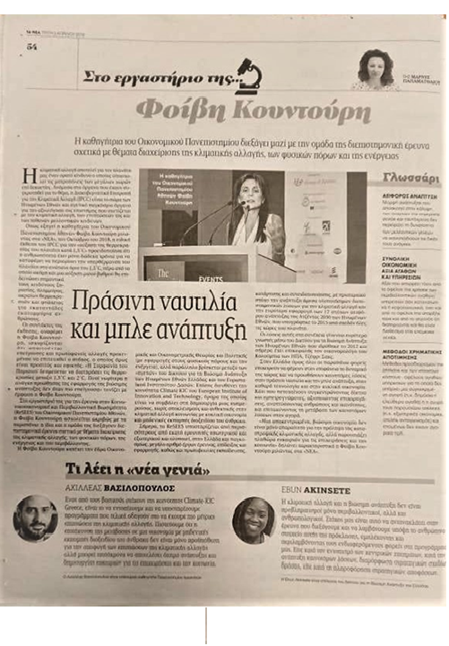 We are delighted to announce that the high level of research quality conducted at the Research Laboratory on Socio-Economic and Environmental Sustainability (ReSEES), launched and directed by Prof Dr Phoebe Koundouri, has been acknowledged and brought to the attention of the public audience by the newspaper ΤΑ ΝΕΑ, earlier this month.
