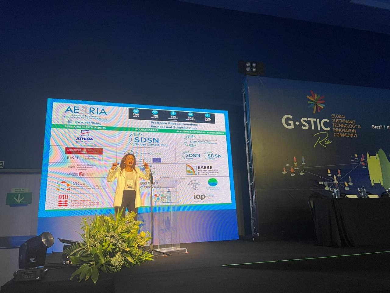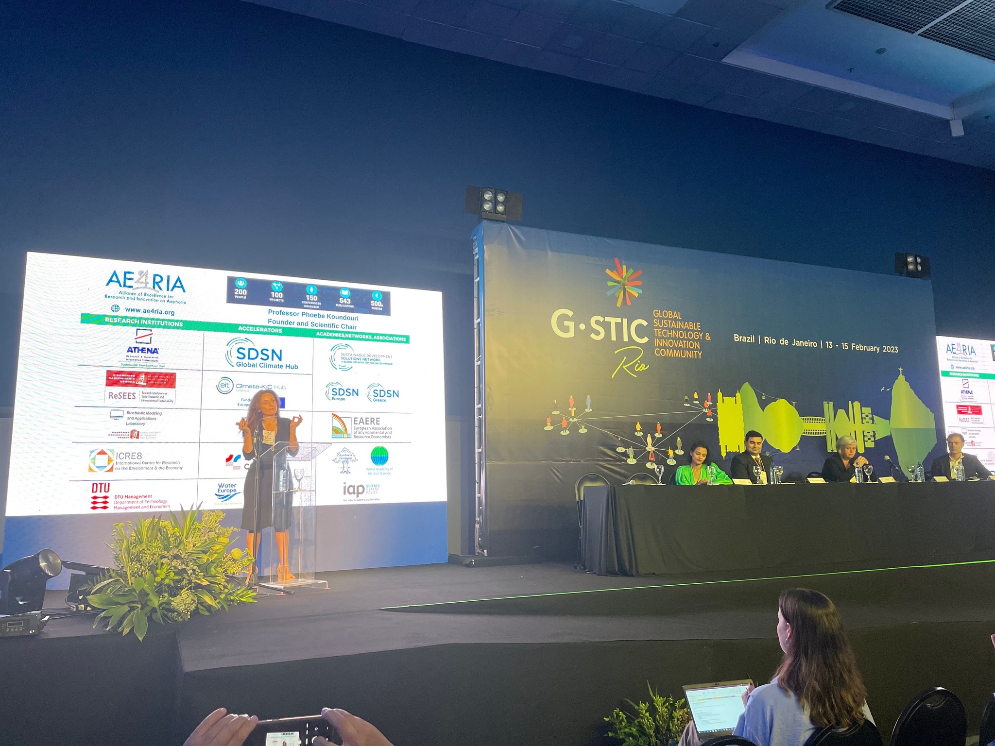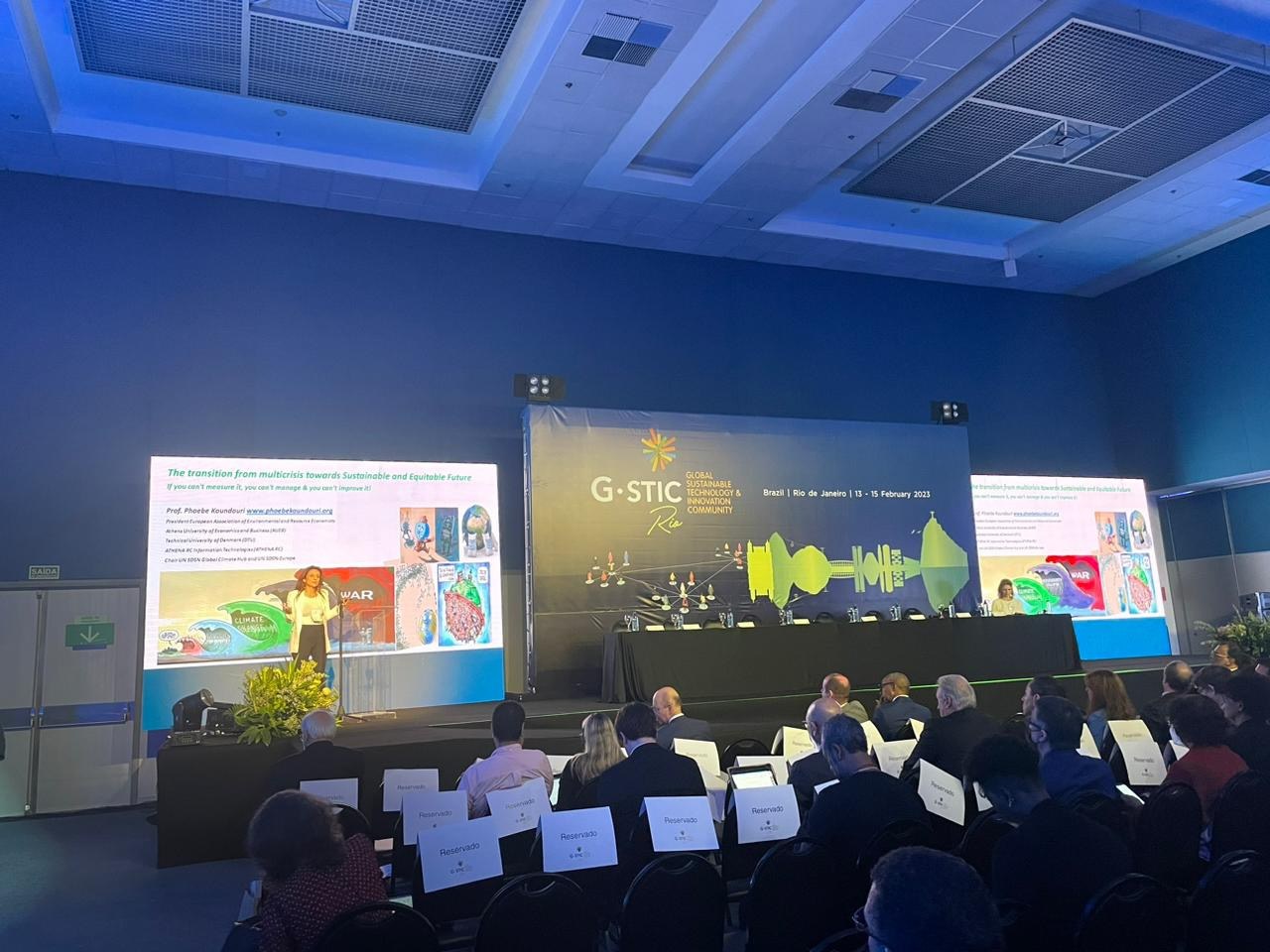 On the 13th of February, Prof. Koundouri participated as a speaker at the High-Level Plenary Session: Toward an Equitable and Sustainable Future at the Global Sustainable Technology and Innovation Community Conference G-STIC Conference in Rio de Janeiro, Brazil along with Pedro Conceição, (United Nations Development Programme, Director Human Development Report Office), H.R.H. Princess Esmeralda of Belgium (Journalist, author and environmental activist), and moderated by Francesca Vanthielen, (Television Actress and Host, Radio Presenter and Economist.