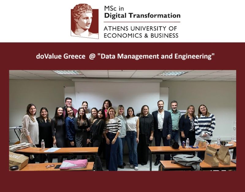As part of the course 'Data Management and Engineering' of the 'Digital Transformation MSc' program, taught by Associate Professor Dimitris Papakyriakopoulos, we had the pleasure of hosting Mr. Konstantinos Fraidakis, Senior Manager of Business Intelligence Data Architecture at doValue Greece.
