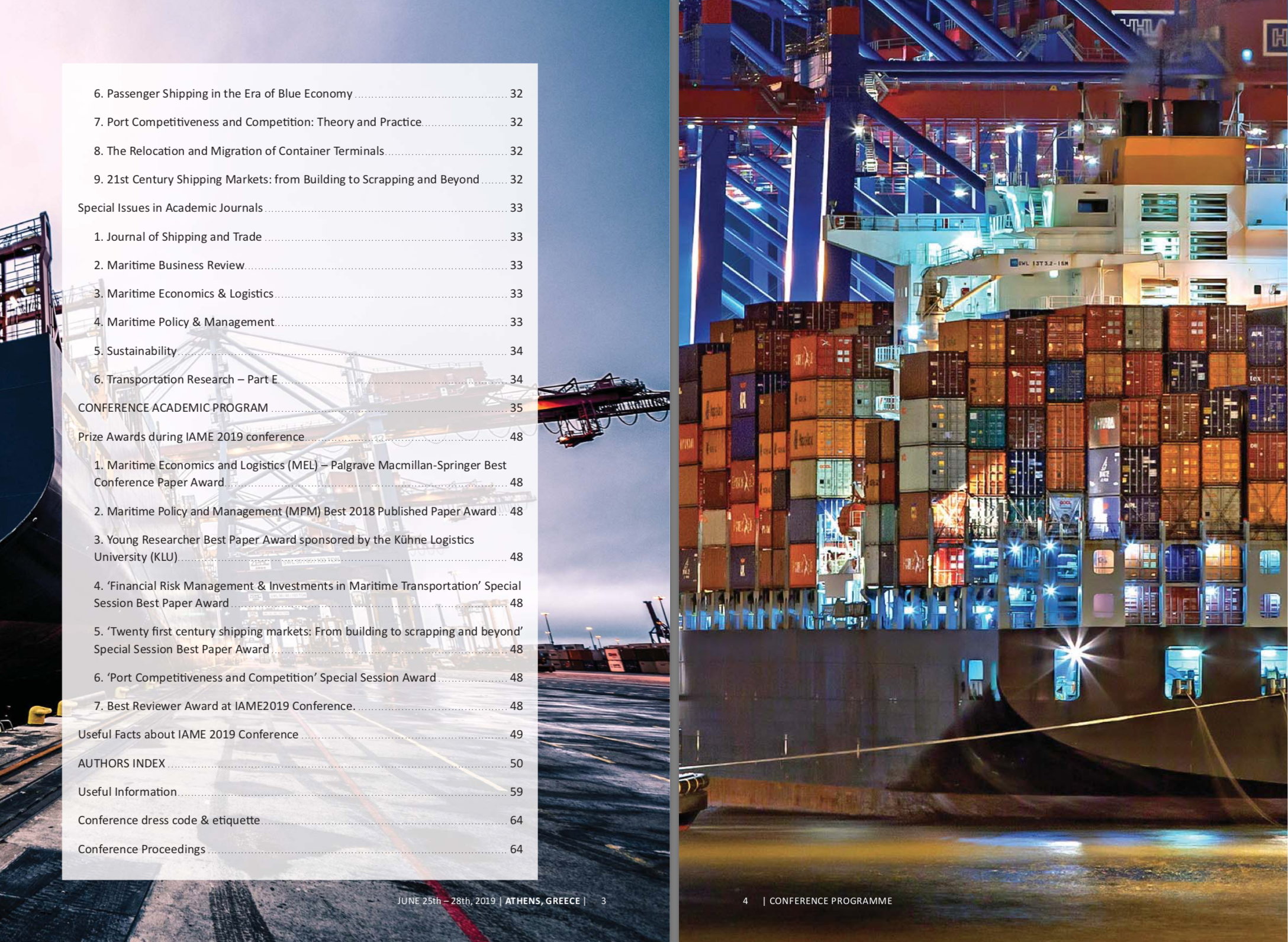 The academic program of the Conference included more than 260 scientific papers, authored by more than 530 authors from 48 countries of the world. A vast range of scientific areas was covered, like for example energy resources in the maritime industry, international policies and regulations, shipping markets, investments and finance, management and strategy in shipping, logistics and supply chain, port economics, policy and management, maritime safety and security, human resources and other maritime related fields. Recent geopolitical and economic developments attracted great attention both from scientists and market executives, as happened also with other current issues faced by the international shipping industry, like the enforcement of IMO 2020 Sulfur Regulation, sustainable development of the industry and the interest of young seafarers in pursuing careers at sea.