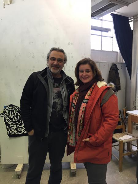 Vasiliki Brinia with Nikos Tranos, Professor of ASFA, sculptor