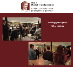 Στο πλαίσιο δράσεων κοινωνικής ενσωμάτωσης και ενδυνάμωσης των δεσμών μεταξύ των φοιτητών του Ε.Π.Μ.Σ. «Digital Transformation/Ψηφιακός Μετασχηματισμός», πραγματοποιήθηκε στις 2 Οκτωβρίου 2025 συνάντηση γνωριμίας εκτός Πανεπιστημίου, στο Green Park. Η εκδήλωση έλαβε χώρα μετά τη λήξη των μαθημάτων και είχε ως στόχο τη σύσφιξη των σχέσεων των νέων φοιτητριών/ φοιτητών με τα στελέχη του Προγράμματος καθώς και με εκπροσώπους της Τράπεζας Eurobank Α.Ε., χρηματοδότη του Μεταπτυχιακού. Η πρωτοβουλία αυτή εντάσσεται στο πλαίσιο των ενεργειών του Προγράμματος για την ενίσχυση της κοινωνικής συνοχής και της συνεργατικής κουλτούρας των συμμετεχουσών/ συμμετεχόντων, αλλά και για την περαιτέρω καλλιέργεια της σύνδεσης του ακαδημαϊκού περιβάλλοντος με τους θεσμικούς και επιχειρηματικούς του εταίρους. Τις/τους φοιτήτριες/φοιτητές χαιρέτησαν ο Διευθυντής του Μεταπτυχιακού, Καθηγητής Γεώργιος Λεκάκος, ενώ χαιρετισμό απηύθυναν ο Πρόεδρος του Τμήματος ΔΕΤ, Καθηγητής Ιωάννης Νικολάου καθώς και εκπρόσωποι της Tράπεζας Eurobank ΑΕ, ο κ. Μιχάλης Βλασταράκης, Γενικός Διευθυντής Marketing & Εταιρικής Επικοινωνίας Ομίλου, Group Chief Marketing Officer (Group CMO) της Τράπεζας Eurobank ΑΕ και ο κ. Παναγιώτης Καρδάσης, Διευθυντής Εταιρικής Κοινωνικής Ευθύνης & Ειδικών Έργων Γεν. Δ/νση Marketing & Εταιρικής Επικοινωνίας Ομίλου Eurobank. Η συνάντηση πραγματοποιήθηκε σε ιδιαίτερα φιλικό και δημιουργικό κλίμα, δίνοντας την ευκαιρία στις/ στους φοιτήτριες/φοιτητές να γνωριστούν μεταξύ τους, να ανταλλάξουν ιδέες και εμπειρίες και να συνομιλήσουν με τα στελέχη της Eurobank και του Προγράμματος για ζητήματα που αφορούν τον ψηφιακό μετασχηματισμό, τις σύγχρονες τάσεις της αγοράς και τις επαγγελματικές προοπτικές που ανοίγονται μέσω των σπουδών τους.