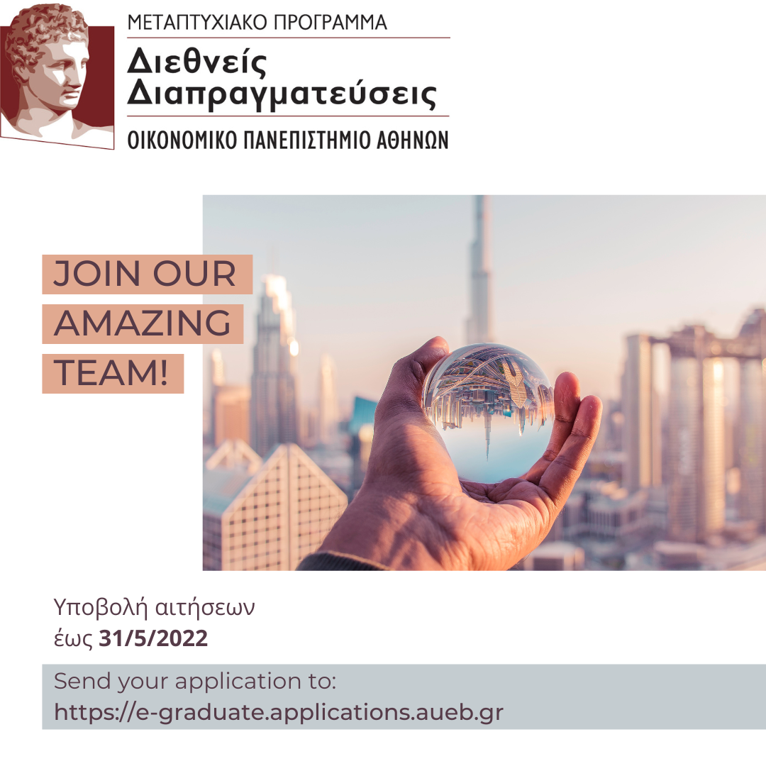 Yποβολή αιτήσεων για το Π.Μ.Σ. Διεθνείς Διαπραγματεύσεις ακαδ. έτος 2022-2023