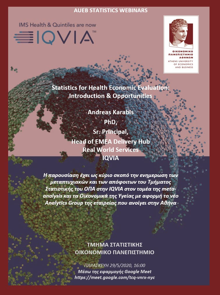 AUEB Webinar: Statistics for Health Economic Evaluation: Introduction & Opportunities by Andreas Karabis Iqvia10
