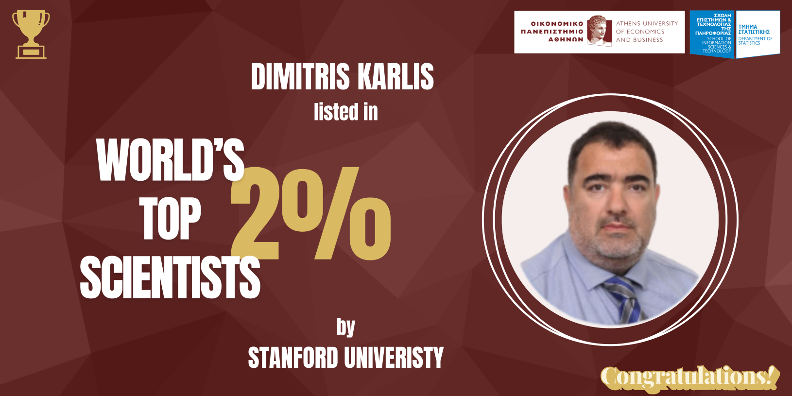 Congratulations to our very own Professor of Statistics, Dimitris Karlis, for being listed in World’s Top 2% Scientists, by Stanford University, for 2023!
