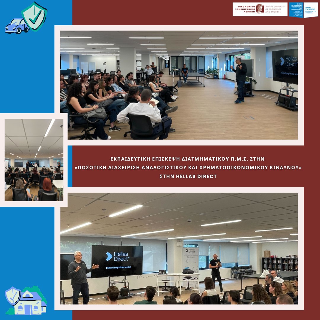Με ιδιαίτερη επιτυχία πραγματοποιήθηκε η εκπαιδευτική επίσκεψη φοιτητών του Τμήματος Στατιστικής – τόσο προπτυχιακών όσο και μεταπτυχιακών του Διατμηματικού Προγράμματος Μεταπτυχιακών Σπουδών «Ποσοτική Διαχείριση Αναλογιστικού και Χρηματοοικονομικού Κινδύνου» – στις εγκαταστάσεις της ασφαλιστικής εταιρείας Hellas Direct.