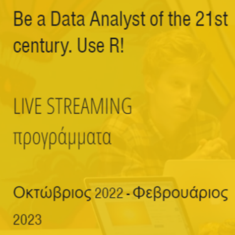 Μετά από 3 χρόνια λειτουργίας δύο προγράμματων e-learning για την εκμάθηση της R από το Κέντρο Επιμόρφωσης και Δια Βίου Μάθησης του Οικονομικού Πανεπιστημίου Αθηνών (ΟΠΑ) με μεγάλη επιτυχία, προχωρούμε στην επανέναρξη των δύο προγραμμάτων R#1 & R#2 με τη μορφή LIVE STREAMING. Τα προγράμματα αυτά έχουν ως σκοπό να εκπαιδεύσουν φοιτητές, πτυχιούχους, καθώς και στελέχη επιχειρήσεων και οργανισμών, με σκοπό να τους εισάγουν στις βασικές αρχές της R. Συγχρόνως, διδάσκουν τις βασικότερες έννοιες της Στατιστικής με κατανοητό, σωστό και συστηματικό τρόπο, χρησιμοποιώντας την R ως το βασικό εργαλείο εφαρμογής της.