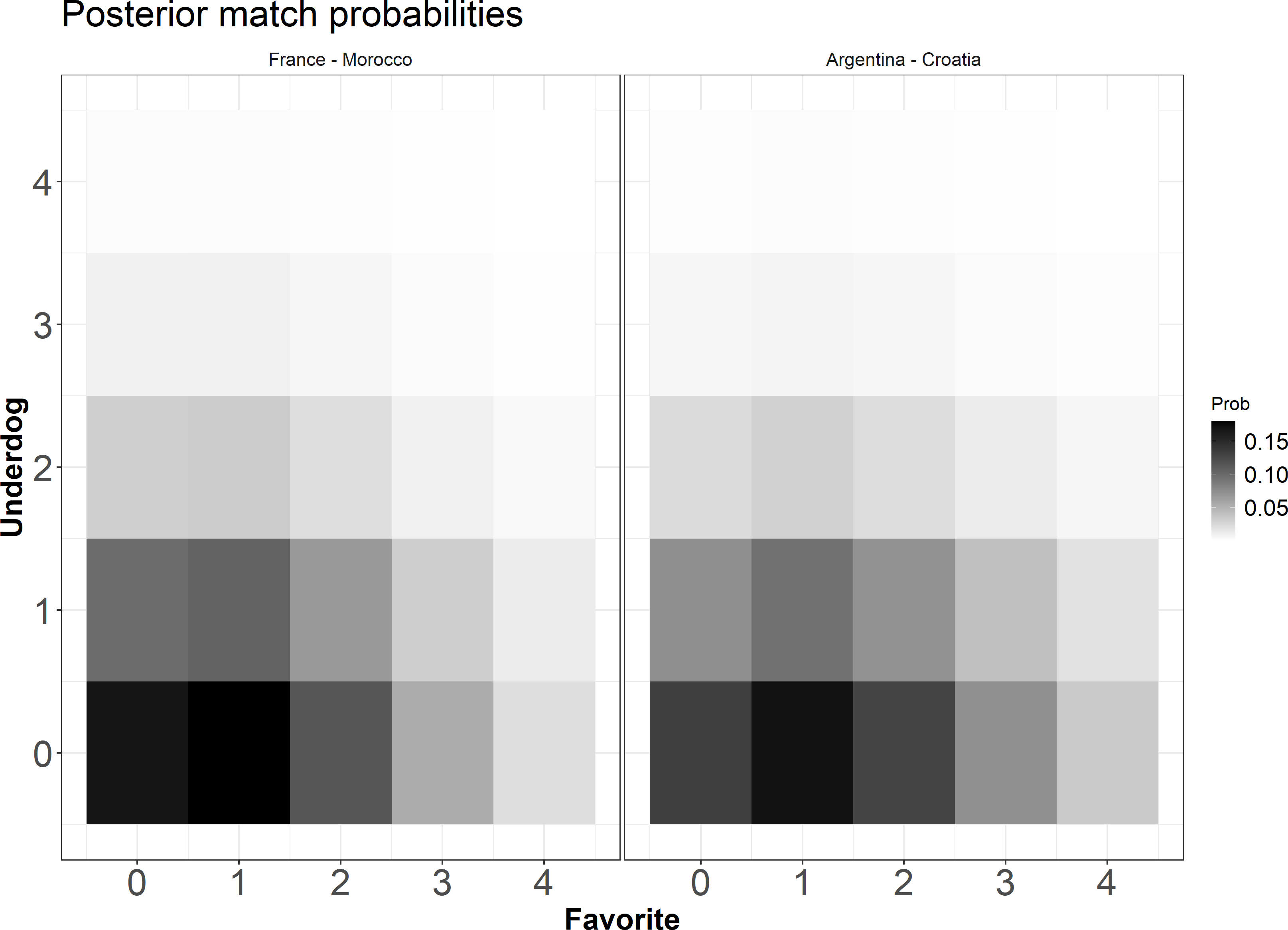 • Η Αργεντινή έχει προβάδισμα επι της Κροατίας με πιθανότητα νίκης 58% όμως η Κροατία έχει 42% πιθανότητα να πάει τον αγώνα στην παράταση ή να κερδίσει. Αυτό πρακτικά σημαίνει ότι αν οι δύο ομάδες παίξουν 10 φορές περιμένουμε περίπου τις 6 να κερδίσει η Αργεντινή και στους 4 να οδηγηθεί ο αγώνας στην παράταση ή να κερδίσει η Κροατία.