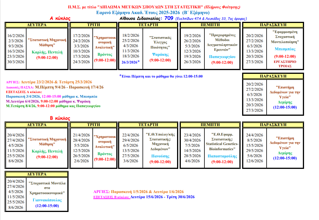 Πρόγραμμα Μαθημάτων Εαρινού Εξ. ακαδ. έτους 2025-26