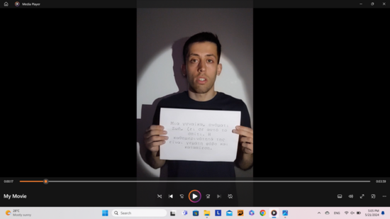 Η παρούσα εργασία εκπονήθηκε στα πλαίσια του προγράμματος «Τέχνη και Εκπαίδευση» για το μάθημα «Πρακτική Άσκηση στη Διδασκαλία ΙΙ (Π.Α.Δ. ΙΙ)», με υπεύθυνη την Δρ. Βασιλική Μπρίνια. Η ομάδα των φοιτητών οι οποίοι πραγματοποίησαν την εργασία αυτή αποτελείται από τους: Αλμπάνη Μαγδαληνή, Δούρος Νικόλαος, Ντάκουρης Γεώργιος, Τριανταφύλλου Σοφία και Τσάλας Ιωάννης. Το θέμα που επιλέξαμε για την εργασία αυτή ήταν η «Ενδοοικογενειακή Βία». Το θέμα αυτό το επιλέξαμε, επειδή είναι μια πολύ σοβαρή μάστιγα της κοινωνίας στις μέρες μας, και θεωρούμε ότι αξίζει να έχει την δέουσα προσοχή προκειμένου ο κόσμος να ενημερωθεί και να ευαισθητοποιηθεί στο πολύ σοβαρό αυτό ζήτημα. Πολλοί άνθρωποι στις μέρες μας, όλων των ηλικιών και των φύλων υφίστανται ενδοοικογενειακή βία και φοβούνται να μιλήσουν. Οπότε, βασίζοντας το έργο μας στο γεγονός αυτό, αποφασίσαμε να γυρίσουμε ένα μικρό βίντεο στο οποίο αναπαριστάμε αρχικά ένα κοινωνικό μήνυμα μέσα από μια ιστορία και στη συνέχεια ένα ποίημα σχετικό με το θέμα μας. Ως τίτλο στο έργο τέχνης μας, βάλαμε τη φράση «Το Φως μέσα στο Σκοτάδι». Επιλέξαμε τον τίτλο αυτό, για να συμβολίσουμε πως η ζωή μέσα στην ενδοοικογενειακή βία μπορεί να είναι σκοτεινή, αλλά με ένα έναυσμα και έναν λόγο για να ζούμε, μπορούμε να ξεφύγουμε από αυτή την κατάσταση και να βρούμε, ξανά, το φως στη ζωή μας. Στα πιο πρακτικά ζητήματα της εργασίας, η φοιτήτρια Τριανταφύλλου Σοφία, δημιούργησε τη μουσική στο πιάνο, η οποία ακούγεται στο βάθος του βίντεο. Με το βίντεο, ασχολήθηκαν οι φοιτητές Αλμπάνη Μαγδαληνή, Δούρος Νικόλαος, Ντάκουρης Γεώργιος και Τσάλας Ιωάννης, οι οποίοι γύρισαν το βίντεο και πρωταγωνίστησαν και σε αυτό. Το ποίημα, έγραψε ο φοιτητής Ντάκουρης Γεώργιος, ενώ για την απαγγελία του, χρησιμοποιήθηκαν οι φωνές των φοιτητών Αλμπάνη Μαγδαληνή και Τσάλα Ιωάννη. Οι καρτέλες που περιέχουν την υπόθεση του έργου τέχνης μας δημιουργήθηκαν από τον φοιτητή Δούρο Νικόλαο, ενώ το γραπτό μέρος της εργασίας εκπονήθηκε από τον φοιτητή Τσάλα Ιωάννη. Τέλος, η φοιτήτρια Τριανταφύλλου Σοφία, επεξεργάστηκε το βίντεο και δημιούργησε το τελικό αποτέλεσμα αυτού. Η εργασία αυτή ήταν αποτέλεσμα της ομαδικής δουλειάς της ομάδας μας που συνεργάστηκε αρμονικά. Επίσης, συναντηθήκαμε αρκετές φορές για να γυριστεί το βίντεο και να ηχογραφηθεί το ποίημα, γεγονός που μας έδεσε πιο πολύ σε προσωπικό επίπεδο, αφού υπήρχαν πολλές στιγμές πλάκας, συζήτησης και χαλάρωσης που μοιραστήκαμε.