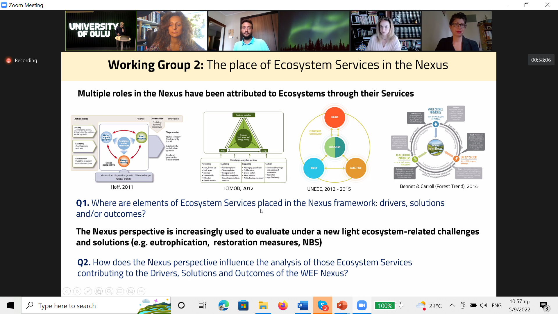 The workshop gathered researchers and practitioners from the fields of “Water-Energy-Food Nexus”, “Ecosystems Services” and “Ecosystems” to explore the definition of Ecosystems in the Nexus debate.
