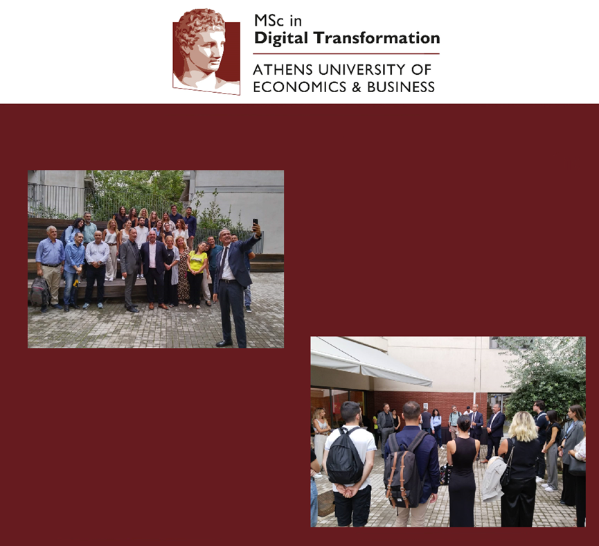 On Wednesday, 18/09/2024, the welcome event for the new cohort of the PMSc in Digital Transformation was successfully held. The students were welcomed by the Program Director, Prof. G. Lekakos, while greetings were offered by the Dean of the School of Business, Prof. A. Poulymenakou, and the Head of the Department of Management Science and Technology, Prof. E. Voudouri. Representatives from the funding partner, Eurobank SA, also addressed the students: Mr. Michalis Vlastarakis, Group Chief Marketing Officer, and Mr. Panagiotis Kardasis, Head of Corporate Social Responsibility & Special Projects, Group Marketing & Corporate Communication Division of Eurobank. They highlighted that funding such an innovative postgraduate program in collaboration with one of the country's leading educational institutions underscores Eurobank's commitment to supporting higher education and fostering its connection with the job market.
